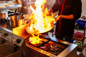 Zdjęcie "Kucharz jest warzywa podsmażyć z przyprawami i sosem w woku na płomień. Proces gotowania w restauracja Azjatycka." może być wykorzystywane do celów osobistych i komercyjnych zgodnie z warunkami zakupionej licencji Royalty-free. Obraz jest dostępny do pobrania w jakości wysokiej rozdzielczości do 5760x3840.