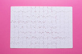 Kompletne puste Układanka jako mock up kopia przestrzeń, widok z góry powierzchni na różowym tle