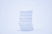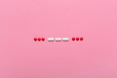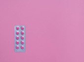 Blister zapakowany pigułki na różowym tle z miejsca kopii