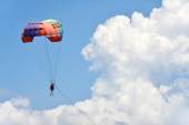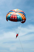 Boracay, Filipiny - 18 listopada 2017: Niezidentyfikowany turysta robi spadochronowych żeglarstwo rekreacyjne w Boracay Island, Aklan, Filipiny