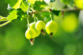świeżych organicznych agrest rośnie w słońcu na krzew w ogrodzie, miejsce, wybranym, wąską głębię ostrości