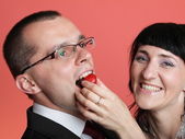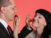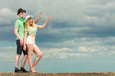 Wakacje letnie i koncepcji szczęścia. Młoda para jedzenie lodów zewnątrz miasta fontanna w tle