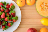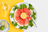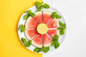 Arbuz na płycie z Limonka cytryna i mięta pozostawia na tle kolor split.