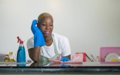 portret młodego zmarnowane i pijany alkoholowych czarny afro American gospodyni picia butelka alkoholu w domu kuchnia uczucie zdesperowany i smutny problem nadużywania i uzależnienia od alkoholu
