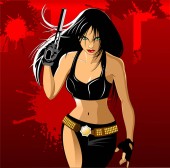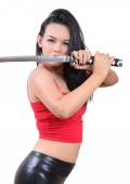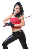 Samuraj kobieta z czarny sexy ubrania w akcji