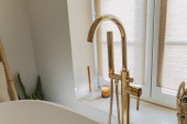 Zdjęcie "White Vintage luksusowe wnętrze łazienka z umywalka, lustro, roślin w puli, zasłony i wieszak na ubrania" może być wykorzystywane do celów osobistych i komercyjnych zgodnie z warunkami zakupionej licencji Royalty-free. Obraz jest dostępny do pobrania w jakości wysokiej rozdzielczości do 5760x3840.