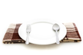 Zdjęcie "Kolacja miejsce ustawienie. Biała płyta ze srebrnym widelcem, nożem i Napery na białym tle." może być wykorzystywane do celów osobistych i komercyjnych zgodnie z warunkami zakupionej licencji Royalty-free. Obraz jest dostępny do pobrania w jakości wysokiej rozdzielczości do 5760x3840.