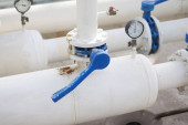 zamknąć zawór wody rury do wspólnego dotknij stali kanalizacji z czerwonym pokrętłem