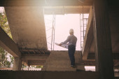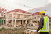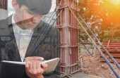 inżynier architekt wyboru pracy budowlanych w plac budowy z lekki poranek wschód słońca