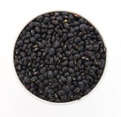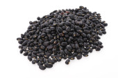 czarna fasola w drewnianą łyżką zbliżenie na białym tle