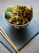 Zdjęcie "Cao Lau na stole ulicznych kawiarni w Hoi (Hoian) w Quang Nam prowincji Wietnamu. Cao Lau jest regionalnym wietnamski danie z makaronem, wieprzowina i lokalnych zielonych. Cao Lau znajduje się tylko w mieście Hoi." może być wykorzystywane do celów osobistych i komercyjnych zgodnie z warunkami zakupionej licencji Royalty-free. Obraz jest dostępny do pobrania w jakości wysokiej rozdzielczości do 5760x3840.