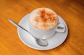 Zdjęcie "Widok z góry z wietnamskich jajko kawę (ca phe trung) na drewnianym stole ulicznych kawiarni. Tradycyjny napój w Wietnamie." może być wykorzystywane do celów osobistych i komercyjnych zgodnie z warunkami zakupionej licencji Royalty-free. Obraz jest dostępny do pobrania w jakości wysokiej rozdzielczości do 5760x3840.