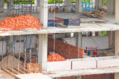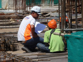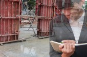inżynier architekt kasku na białym tle na białym tle, widok z tyłu