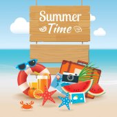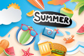 Czas letni z papieru wyciąć symbol ikonę tło plaża wakacje. Styl sztuki i rzemiosła. Wykorzystanie do banner, plakat, karty, cover, naklejki, odznaki, ilustracja projektu.