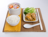 kurczaka i zioło zupa w garnku, chiński karmowy styl.