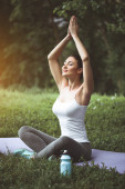 Slim lady robi stretch ćwiczenia na świeżym powietrzu