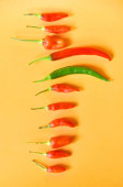 Strąki czerwonej papryczki chili, na jasnym tle żółty.