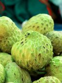 Kupie lub stosu lub Custard Apple, jabłko cukrowe, tropikalnej Ameryki słodkie i miękkie ciało fizyczne owoców w koszyku.