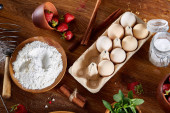 Świeże liście mięty w misce na drewnianym stole, zbliżenie, Selektywny fokus, płytkiej głębi ostrości.