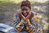Zdjęcie "Niesamowite modelu african american Kobieta w zielone spodnie i czarny kapelusz pozował z różnych emocji w parku, pokazuje smutną twarz." może być wykorzystywane do celów osobistych i komercyjnych zgodnie z warunkami zakupionej licencji Royalty-free. Obraz jest dostępny do pobrania w jakości wysokiej rozdzielczości do 5760x3840.