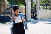 Zdjęcie "Niesamowite modelu african american Kobieta w zielone spodnie i czarny kapelusz stwarzane w ławce i przy użyciu smartfona." może być wykorzystywane do celów osobistych i komercyjnych zgodnie z warunkami zakupionej licencji Royalty-free. Obraz jest dostępny do pobrania w jakości wysokiej rozdzielczości do 5760x3840.