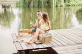 Zdjęcie "Młoda para jazdy szampana na brzegu rzeki" może być wykorzystywane do celów osobistych i komercyjnych zgodnie z warunkami zakupionej licencji Royalty-free. Obraz jest dostępny do pobrania w jakości wysokiej rozdzielczości do 5760x3840.