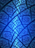 Abstrakcyjna czerwona Witraż w centrum spa. Szkło mozaiki wzór kwiatowy.