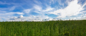 Malowniczy krajobraz z pola trawa zielona. Jasne błękitne niebo z chmurami na tle. Kopiować ujemna przestrzeń, miejsce dla tekstu. Giethoorn, Holandia