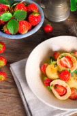 Nadziewane truskawkowe pierogi, delish deser z ziołami, Fotografia żywności