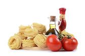 makaron z oliwą z oliwek i pomidorów na białym tle