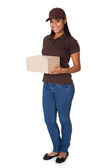 dostawy ładna dziewczyna pół długości na białym tle