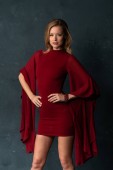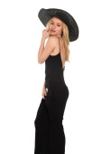 Wysoka Szczupła blondynka w suknię długi niebieski