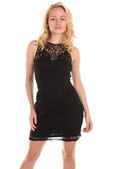 Wysoka Szczupła blondynka w suknię długi niebieski