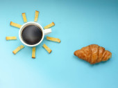 Zdjęcie "Poranna kawa w filiżance biały rogalik na jasnym tle Wake-up z budzikiem śniadanie wesołość, zdrowy śniadanie świeżość płaskim leżał kopii spase" może być wykorzystywane do celów osobistych i komercyjnych zgodnie z warunkami zakupionej licencji Royalty-free. Obraz jest dostępny do pobrania w jakości wysokiej rozdzielczości do 5760x3840.