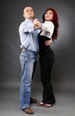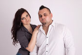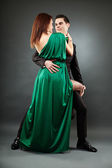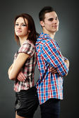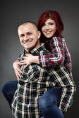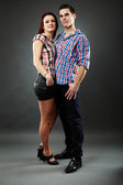 wesoła, młoda para, obejmując w pozie pełnej długości