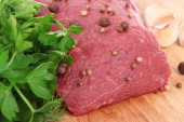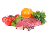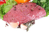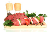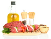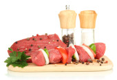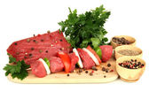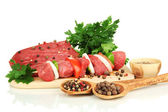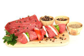 surowy wołowiny marynowane z ziół i przypraw na białym tle