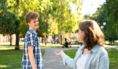 Facet z dziewczyna w lecie na ławce. Konflikty w związku. Dziewczyna ma silny ból głowy. Kłótni i nieporozumień w relacji. Milczenie problem w życiu rodzinnym.