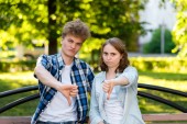 Zdjęcie "Facet z dziewczyna w lecie na ławce. Konflikty w związku. Dziewczyna ma silny ból głowy. Kłótni i nieporozumień w relacji. Milczenie problem w życiu rodzinnym." może być wykorzystywane do celów osobistych i komercyjnych zgodnie z warunkami zakupionej licencji Royalty-free. Obraz jest dostępny do pobrania w jakości wysokiej rozdzielczości do 5760x3840.