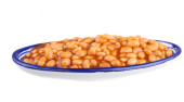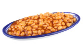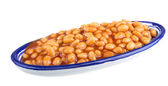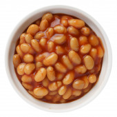 marynowane fasola w sosie pomidorowym z szalotki na talerzu