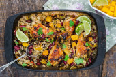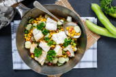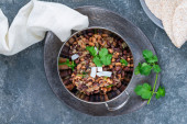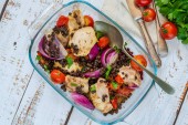 Kurczak i Pomidory czereśniowe piec z soczewicy puy - widok z góry