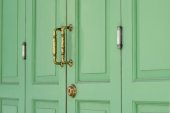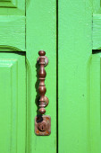 Zdjęcie "Vintage żelaza drzwi pokrętło z ornamentem na zielonym tle pastel, koncepcja obiektów zabytkowych, naturalne światło, miejsce, zbliżenie." może być wykorzystywane do celów osobistych i komercyjnych zgodnie z warunkami zakupionej licencji Royalty-free. Obraz jest dostępny do pobrania w jakości wysokiej rozdzielczości do 5760x3840.