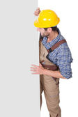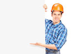 portret szczęśliwy pracownik przedstawienie pusty transparent