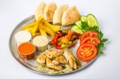 Zdjęcie "Shwarma w płycie z hummus i sałatka" może być wykorzystywane do celów osobistych i komercyjnych zgodnie z warunkami zakupionej licencji Royalty-free. Obraz jest dostępny do pobrania w jakości wysokiej rozdzielczości do 5760x3840.