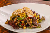 Zdjęcie "Wołowina z sosem i Sałata lodowa" może być wykorzystywane do celów osobistych i komercyjnych zgodnie z warunkami zakupionej licencji Royalty-free. Obraz jest dostępny do pobrania w jakości wysokiej rozdzielczości do 5760x3840.