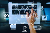 Zdjęcie "Rozwój technologii programowania i kodowania projektowanie wirtualne diagramie. Biznesmeni, pracujących razem nad dokumentem i za pomocą smart telefonu i cyfrowy tablet i laptop komputer w nowoczesnym biurze " może być wykorzystywane do celów osobistych i komercyjnych zgodnie z warunkami zakupionej licencji Royalty-free. Obraz jest dostępny do pobrania w jakości wysokiej rozdzielczości do 5760x3840.