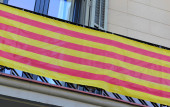 Flaga Katalonii na budynkach mieszkalnych, wyświetlane, aby pokazać poparcie dla katalońskiej niezależności