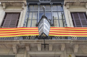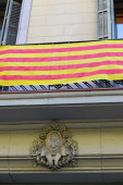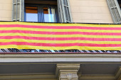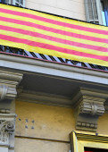Flaga Katalonii na budynkach mieszkalnych, wyświetlane, aby pokazać poparcie dla katalońskiej niezależności