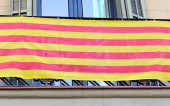 Flaga Katalonii na budynkach mieszkalnych, wyświetlane, aby pokazać poparcie dla katalońskiej niezależności