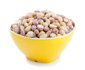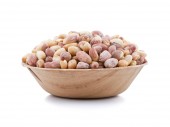 Zdrowe prażone solone orzeszki ziemne izolowane na białym tle