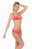 Wysoka Szczupła blondynka topless w czerwonej bieliźnie